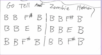 • cellists: regular, with huge bows, tone, and vibrato. Groan “BRAINS!” on all half notes. Big kids: can tremolo bass notes below.